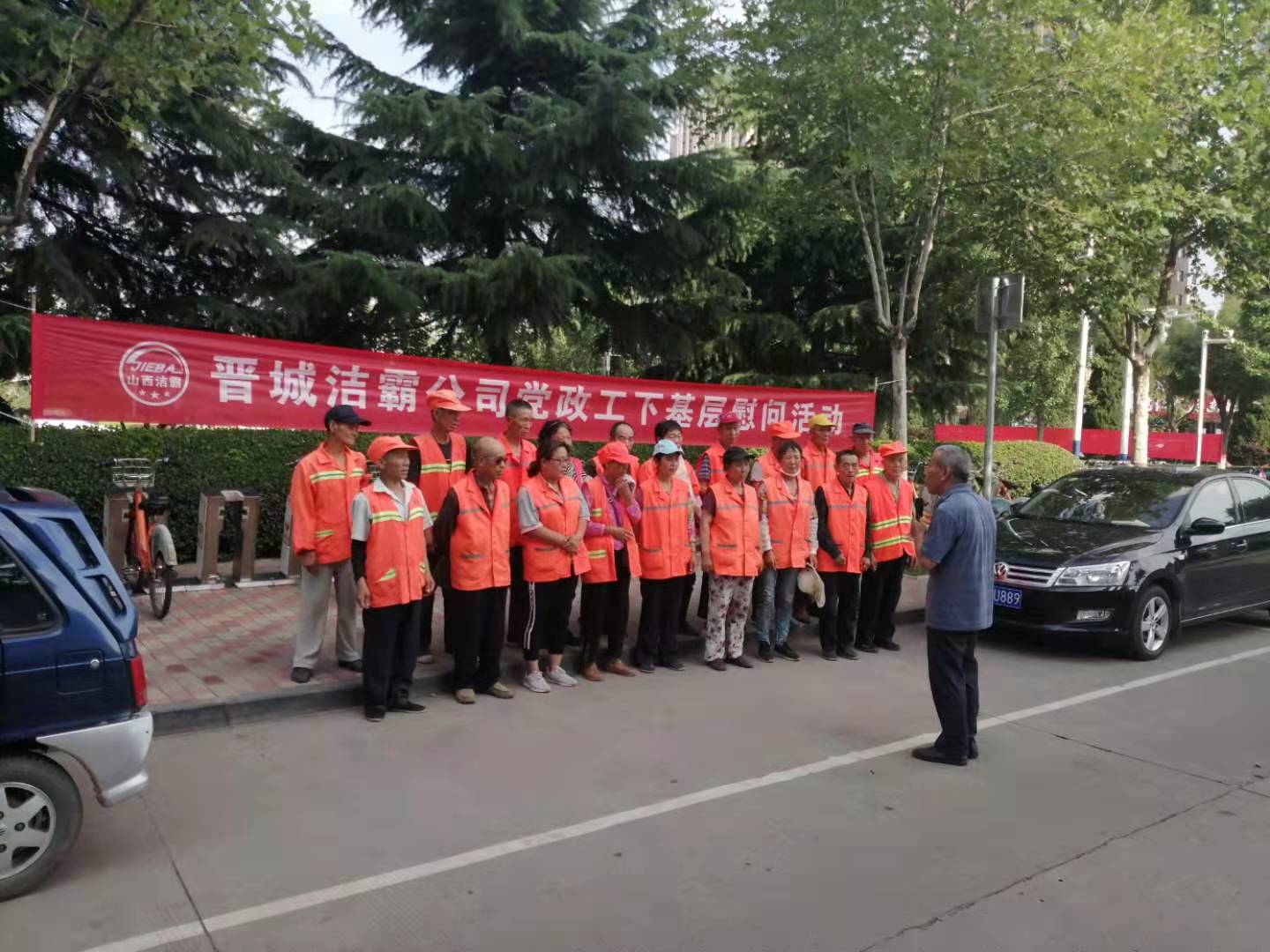 “大家辛苦了!”工會(huì)崔主席面對(duì)站在對(duì)面的滿臉汗水的環(huán)衛(wèi)員工深深一鞠躬,向高溫下奮戰(zhàn)在一線的環(huán)衛(wèi)員工們表示感謝。崔主席說,大家從事的環(huán)衛(wèi)工作雖苦、臟、累,但是大家心靈美,創(chuàng)建全國文明城市有咱的功勞,這是咱們潔霸的榮耀!他叮囑隨行的保潔部主管,在炎熱的夏季要時(shí)刻關(guān)心一線的員工,多傾聽員工的心聲,積極為他們做好后勤保障工作。他囑咐環(huán)衛(wèi)員工們,在高溫下作業(yè)要做好防暑降溫工作,確保自身健康安全。工作中要積極配合主管,共同把工作干好。