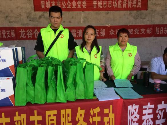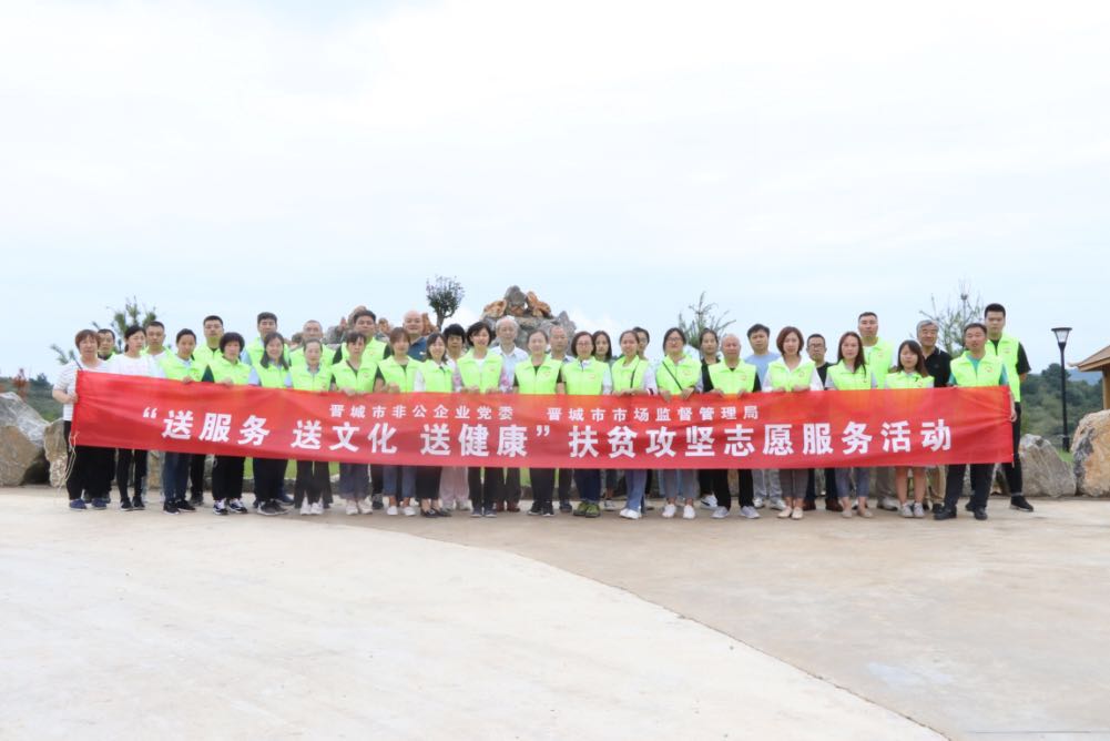 此次活動(dòng)由晉城市市場監(jiān)督管理局和市非公企業(yè)黨委領(lǐng)導(dǎo)帶隊(duì),非公黨委下屬的潔霸清潔、神利電器、隆泰實(shí)業(yè)、龍谷倉等九個(gè)支部的黨員志愿者30余人參加,活動(dòng)旨在關(guān)愛弱勢群體,提供志愿服務(wù),弘揚(yáng)黨員志愿者精神,切實(shí)發(fā)揮文明單位的引領(lǐng)示范作用,送文化和健康下鄉(xiāng),助力晉城市扶貧攻堅(jiān)行動(dòng)。
