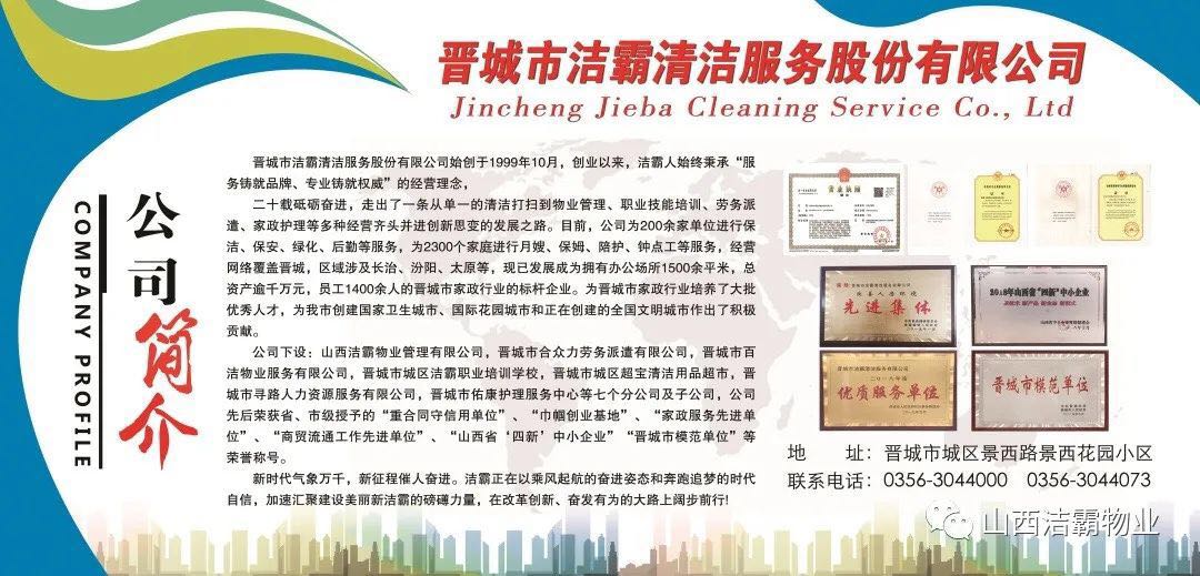 20年砥礪奮進(jìn),從一個(gè)租賃兩間辦公室名不見經(jīng)傳的小公司,成長(zhǎng)為擁有擁有辦公場(chǎng)所1500余平米,總資產(chǎn)逾千萬(wàn)元,員工1500余人的晉城市家政行業(yè)的標(biāo)桿企業(yè),潔霸完成了精彩跨越,“做清潔行業(yè)的霸主”的發(fā)展定位從未改變。