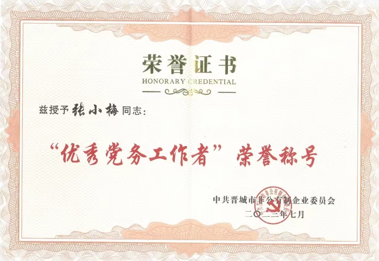 7月5日上午,市非公企業(yè)黨委慶祝建黨102周年暨“兩優(yōu)一先”表彰大會(huì)在在市市場(chǎng)監(jiān)管局7樓會(huì)議室舉行。公司黨支部榮獲“先進(jìn)基層黨組織”榮譽(yù)稱號(hào),黨支部副書記張小梅被評(píng)選為“優(yōu)秀黨務(wù)工作者”,紀(jì)檢委員張青霞被評(píng)選為“優(yōu)秀共產(chǎn)黨員”。