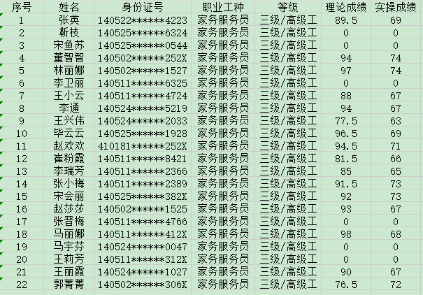 2024年4月28日第1批家政服務員高級認定人員成績公示