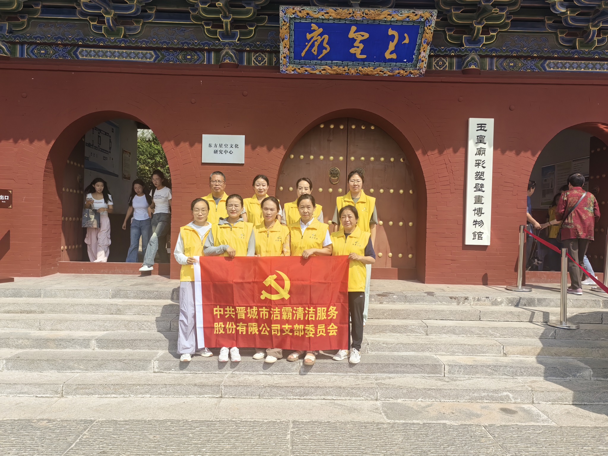 按照玉皇廟工作人員的安排,公司支部黨員和入黨積極分子化身為秩序維護員,在廟內(nèi)的不同區(qū)域配合安保人員開展文物保護、安全維護等工作。引導游客游覽路線;提醒游客看管好隨身物品;提醒游客在拍攝文物時不得使用閃光燈輔助光源,關閉相機對焦輔助燈;為游客看護寵物等等,積極為游客營造安全、有序的旅游環(huán)境。利用中午吃飯休息的時間,大家參觀了玉皇殿、成湯殿、二十八宿殿等,觀看了噓幻生真古代彩塑藝術展,了解了不同時期的代表性彩繪泥塑和制作過程,更加堅定了文化自信。