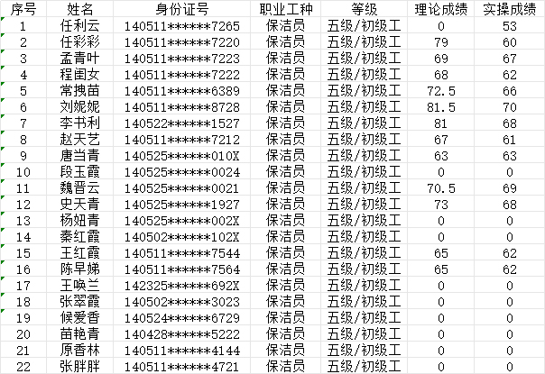 2024年9月15日第38批保潔員初級認定人員成績公示