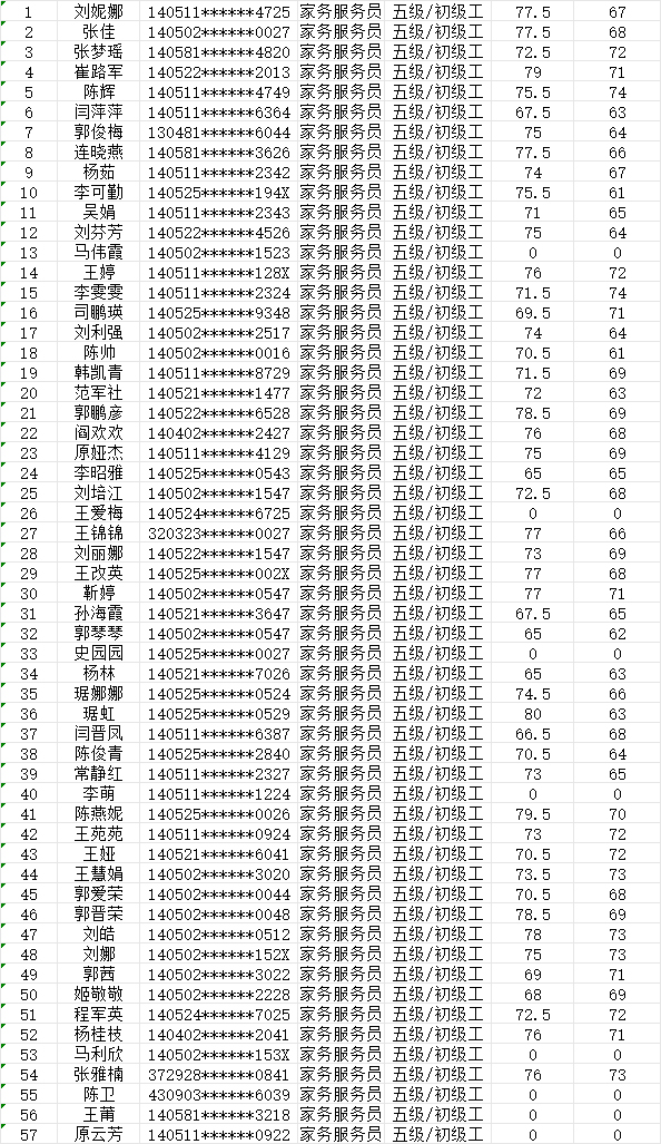 2024年9月21日第39批家政服務(wù)員初級(jí)認(rèn)定人員成績公示